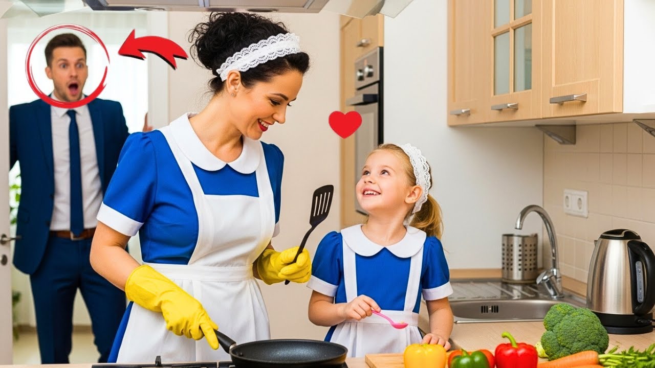 Uma tarde, ao chegar a casa mais cedo que o habitual, entra na cozinha e vê algo que nunca esperou. A sua nova empregada está a ensinar a sua filha, uma menina que não sorria há meses a cozinhar. A farinha na bancada, risos no ar e uma centelha nos olhos do seu filha. Ele fica ali a olhar em silêncio até que finalmente pergunta o que está acontecendo.