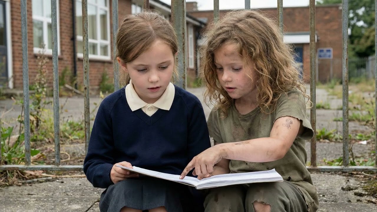 O cabelo estava emaranhado e sujo, e os tênis estavam literalmente a cair aos pedaços e colados com fita adesiva. Tudo na sua aparência sugeria que ela era sem abrigo ou extremamente pobre. Mas não foi a pobreza dela que chamou a minha atenção. Era o que ela estava a fazer. Ela estava a ensinar algo a Charlotte. apontava para um caderno que segurava e explicava algo com gestos animados.