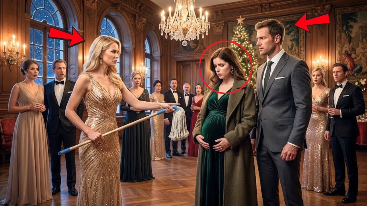 Eu estava no meio da festa de Natal do escritório do meu marido, grávida de se meses, usando um vestido emprestado. A amante dele acabara de me entregar um esfregão, chamando-me de empregada na frente de todos. O meu marido riu. O quê? Nenhum deles sabia. O meu pai era o proprietário do edifício e acabou de entrar.