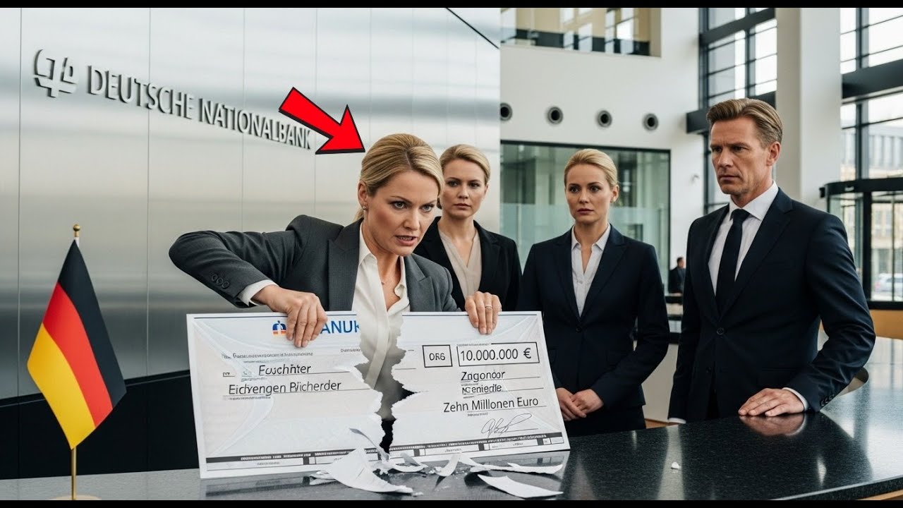 Als Katharina Weber, Direktorin der Hauptfiliale der deutschen Nationalbank in Frankfurt, den Check über 10 Millionen Euro nahm und ihn vor aller Augen in zwei Teile zerriss, war die Stille im Konferenzraum ohrenbetäubend. Die drei Angestellten hinter ihr standen mit offenem Mund da, unfähig zu glauben, was sie gerade gesehen hatten.