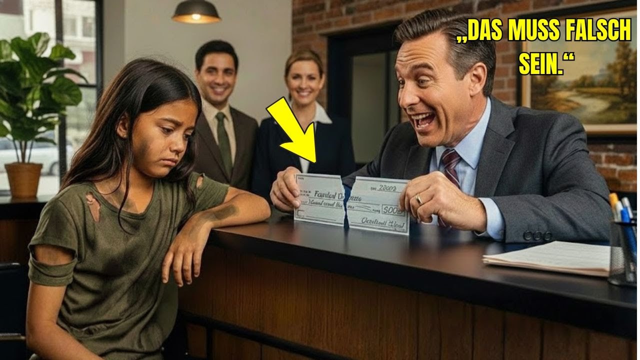 Charlotte räusperte sich kurz, um ihre Nervosität zu verbergen, und antwortete mit ihrer feinen, aber dennoch festen Stimme: “Guten Tag, Herr. Ich möchte gerne diesen Check hier auf mein Konto einzahlen, wenn das möglich ist.” Peter beobachtete, wie Charlotte mit ihren kleinen Händen den Rucksack öffnete und ein etwas zerknittertes Papier herausholte, dass sie ihm entgegenstreckte.