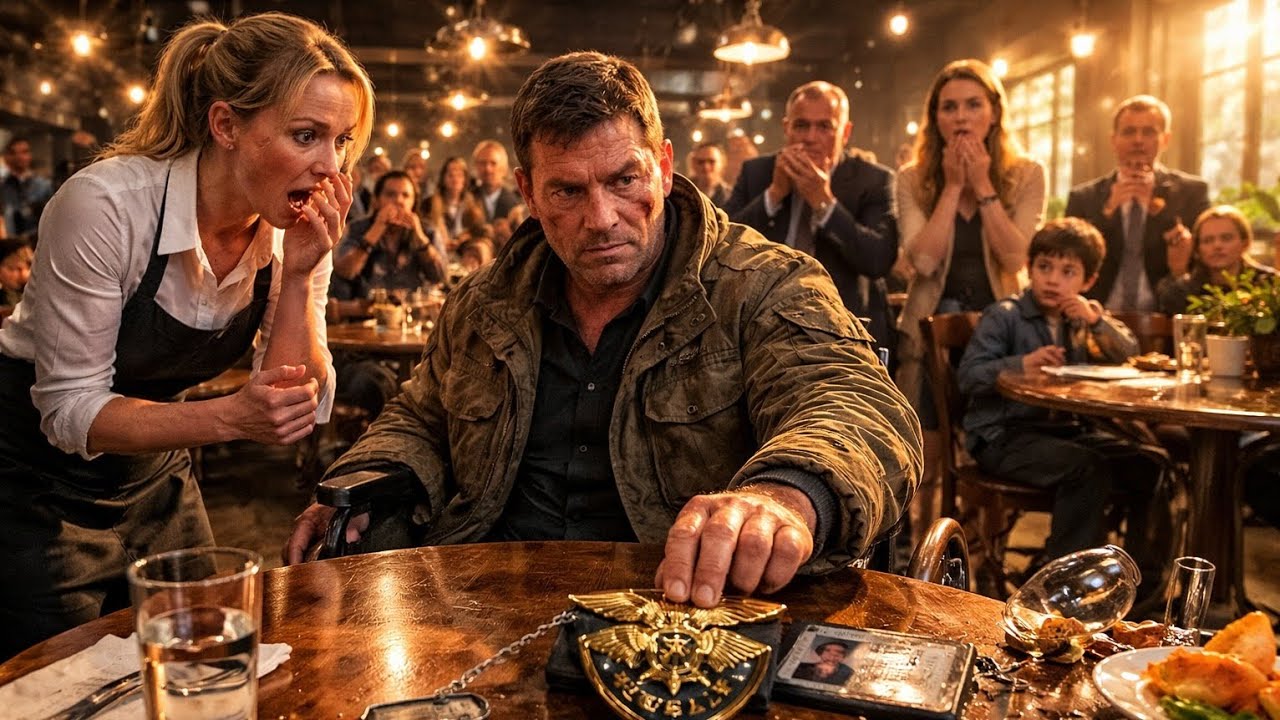Protest, kein Ärger, nur ein kurzer Blick durch den Raum, als würde er alles scannen. Dann drehte er sich langsam weg. Doch genau in diesem Moment stolperte ein Kellner hinter ihm. Ein Tablett mit heißen Tellern kippte direkt auf ein kleines Kind am Nebentisch zu. Alles geschah in Sekunden. Bevor jemand reagieren konnte, war der Mann aus dem Rollstuhl hochgeschnellt. Blitzschnell fing er das Tablett ab, seine Bewegungen präzise, kontrolliert. Kein Zittern mehr, keine Unsicherheit. Stille. Das Restaurant erstarrte.