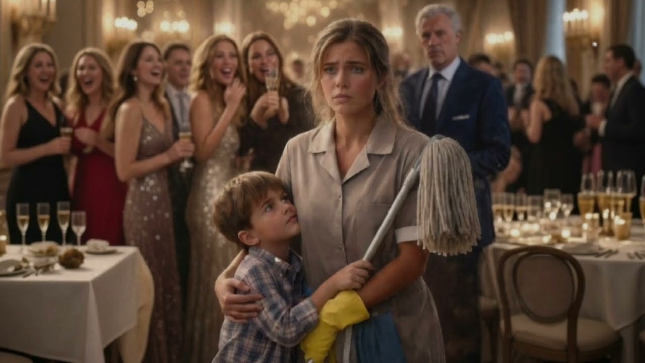 ihn weg. Ein paar Frauen in Designerkleidern drehten sich um, flüsteren, lächelten. Der Junge verstand nicht alles, aber genug. “Mama, gehen wir?”, fragte er leise, doch da klang eine Stimme hinter ihnen. “Moment.” Eine elegante Frau Champagnerlas in der Hand trat näher. Das Lächeln auf ihren Lippen war perfekt. Und leer. Ist das nicht peinlich? Sagte sie laut genug, dass andere es hörten. Personal, das seine Kinder mitbringt, um Mitleid zu bekommen. Leises Lachen. Nicht laut,